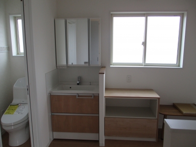 2階にもある洗面台とちょっとした作業ができるスペース