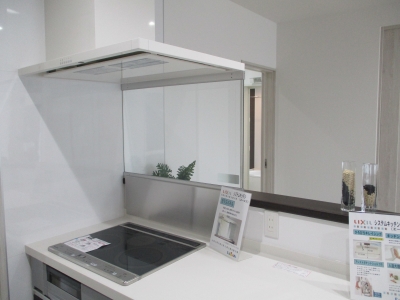 リクシル仕様で、IHの前面全てガラス張り