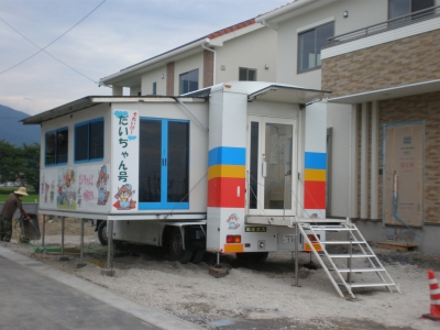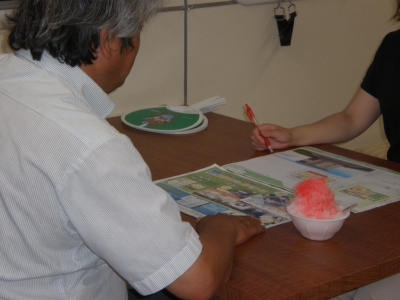 新築建売 分譲 池田町 萩原台 7棟 本日より 販売開始 冷房中・・・ キッチンバス かき氷ご用意しました 氷 イチゴ・抹茶・ミルク etc キッチンカーの内部は商談スペースになってます エアコン効いてます 気楽にお越しください